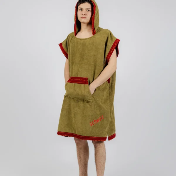 El poncho Schwarz está pensado para acompañarte en esos momentos donde el mar y la libertad se encuentran. Diseñado para cambiarte cómodamente después de surfear, ofrece abrigo, practicidad y ese toque de estilo que define a los que viven conectados con el océano. Su textura suave y absorbente te envuelve después de cada sesión, mientras su diseño funcional te da la comodidad que necesitas sin perder actitud. Más que una prenda, es parte del ritual: salir del agua, respirar profundo y sentir que todo empieza otra vez.
